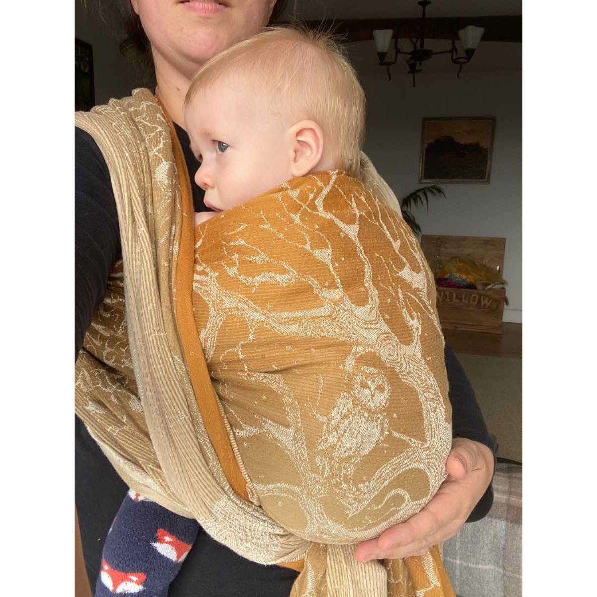 Spindrift Sunrise Midwinter is a 50% hemp, 50% organic combed cotton blend wrap. Our hemp is naturally eco friendly, taking fewer resources to grow and with less reliance on chemicals than other fibres. Hemp is easy to care for, softens beautifully, is naturally strong and great at heat regulation. This wrap can handle both tiny babies and large toddlers. It is easy for new babywearers to use and will remain an old faithful for experienced wrappers! It will work well in both summer and winter- a true ‘one and done’ wrap. W